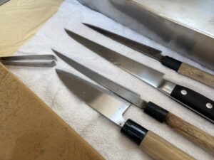 こちらはプロが使う包丁の数々、骨抜きもあります。