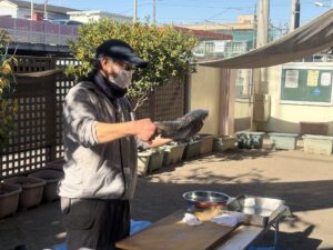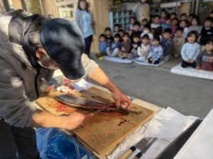 いつも保育園に美味しい魚を届けてくれている魚徳さん。