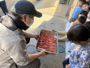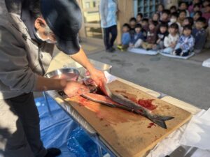 そんな魚徳さんが、今年も子ども達の前で鮭を捌く姿を見せてくれました。